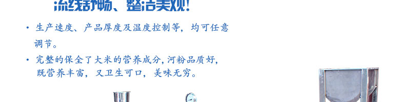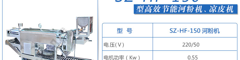 SZ-HF-150高效節能(néng)河粉機(jī),用高效節能河粉機生產的河(hé)粉,完整保(bǎo)全了大米的營養成分,河粉品(pǐn)質一流,既(jì)營養豐(fēng)富,又衛生可口、美味無窮。