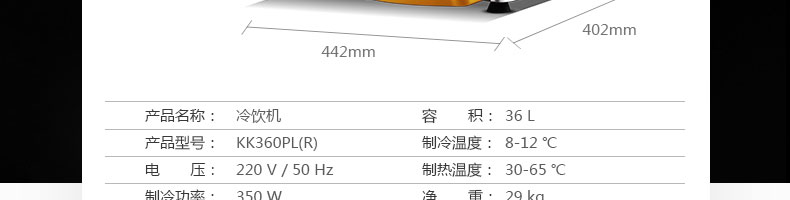 名稱PL-234A/234TM冷飲機係列 電源220/220V 功率0.32/0.35 kw 產量36/36L 尺寸485*470*740/485*470*740mm 重量30/30kg 規格 其他